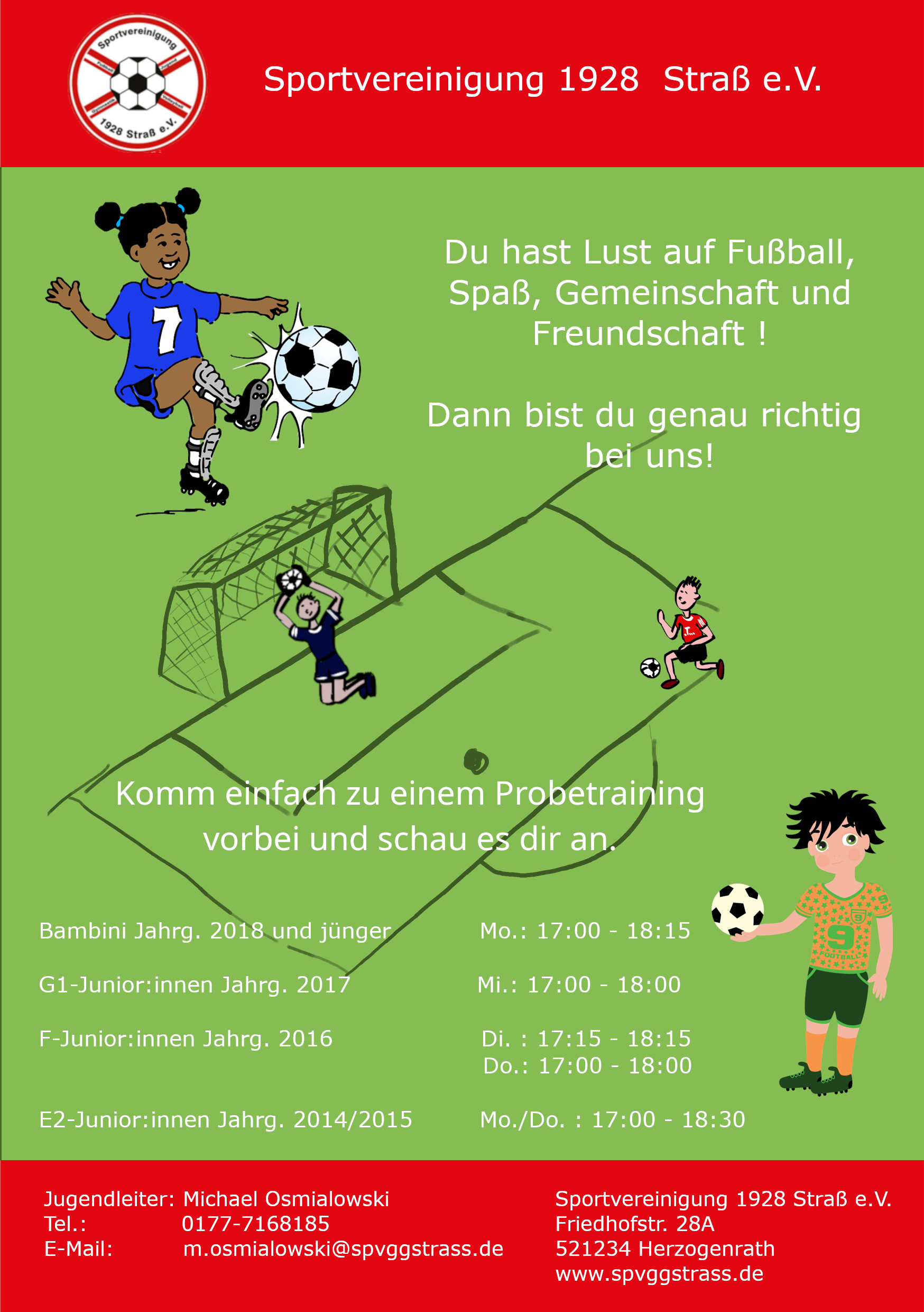 Die Spvgg 1928 Straß e.V. bietet zu jeder Jahreszeit ein abwechslungsreiches Programm. Unser vielfältiges Angebot bietet Jung und Alt die Möglichkeit, Sport in der Gruppe zum Erlebnis zu machen.